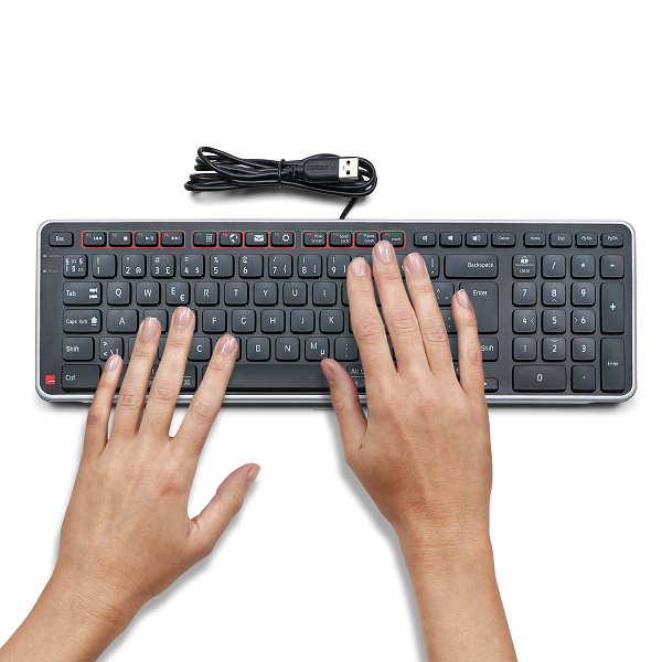 Naast dat het toetsenbord je meer functionaliteit geeft met de mediatoetsen is dit ook één van de weinige toetsenborden met een volledige lay-out dat wij voeren in onze webshop. Dit betekent dat dit toetsenbord een numeriek deel heeft aan de rechterkant. Normaliter voeren wij deze toetsenborden niet om ergonomische redenen. Dan moet het wel heel wat betekenen als dit toetsenbord wel door onze ergo-keuring komt.