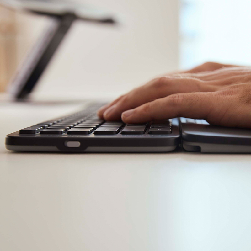 Het Contour Balance Full Sized toetsenbord is ontwikkeld om je lichaam te laten ontspannen terwijl je werkt. Dankzij het ultradunne profiel en de ergonomisch gevormde toetsen blijven je handen in een natuurlijke hoek, wat spanning in polsen, armen en schouders helpt verminderen. De stille schaar toetsen geven een soepele, nauwkeurige toetsaanslag, ideaal voor wie veel typt. De full-size lay-out met aparte pijltjes, numeriek en navigatietoetsen maakt het toetsenbord geschikt voor intensief kantoorwerk en gegevensinvoer.