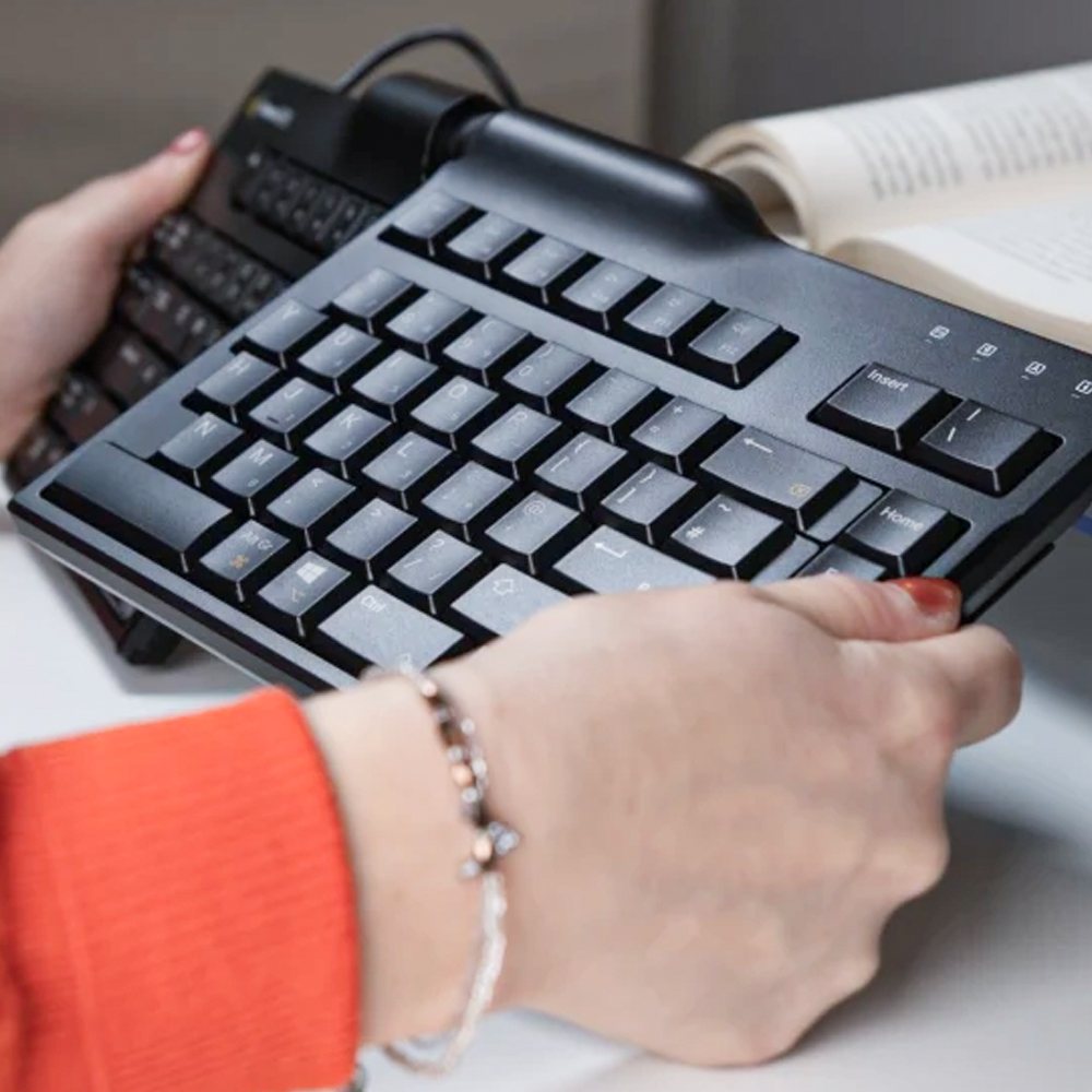 Het Goldtouch Elite gesplitst toetsenbord is een volledig verstelbaar, ergonomisch toetsenbord voor je vaste of thuiswerkplek. Dankzij het centrale draaipunt stel je zowel de horizontale spreiding tot 30° als de verticale kanteling tot 60° traploos in, zodat polsen, handen en onderarmen in een natuurlijke stand komen. Met één schakelaar wissel je tussen pc- en Mac-modus én tussen een Default of Alternate lay-out.