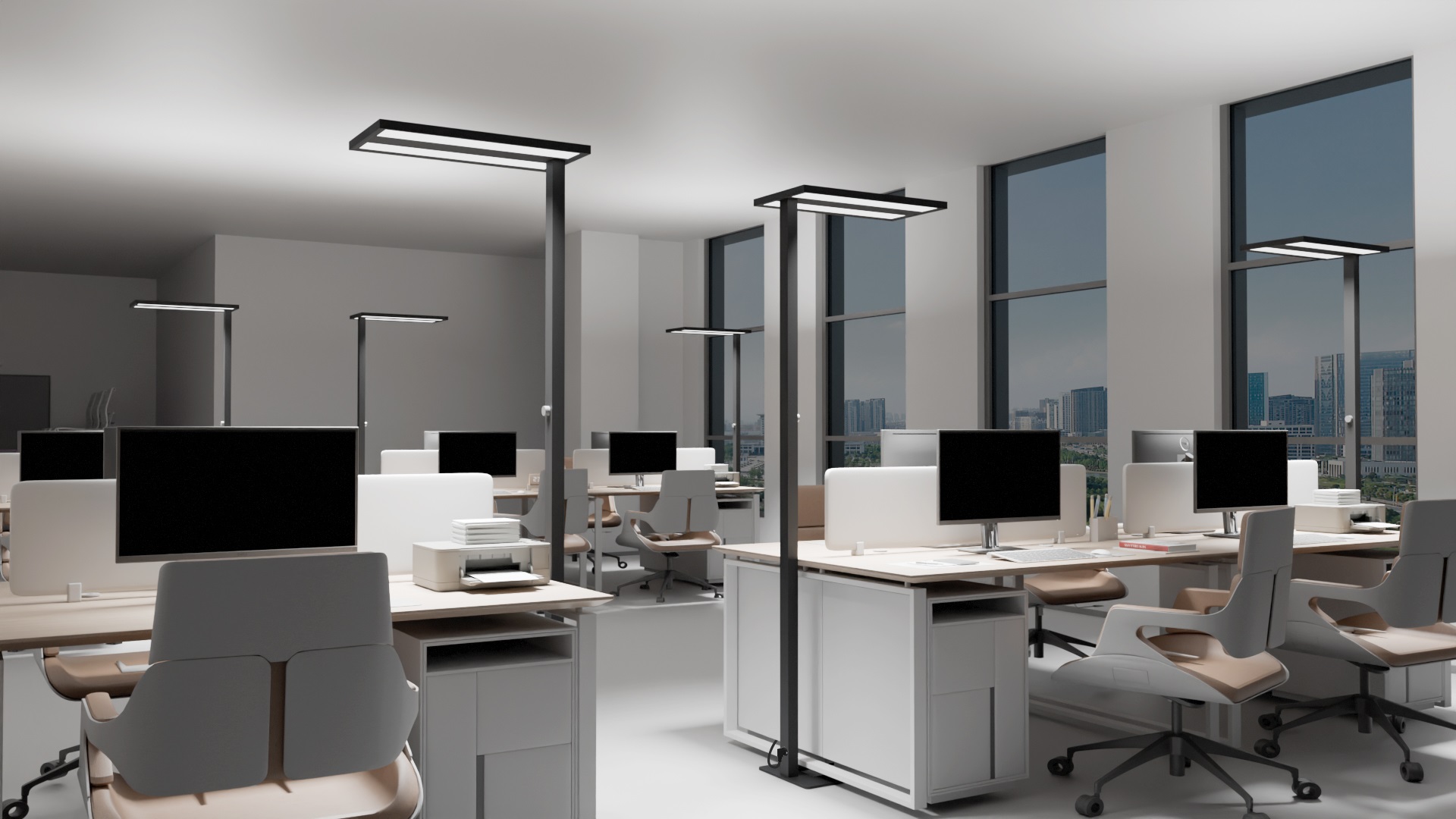 Voor iedereen die veel achter een scherm werkt en schitteringsarm, consistent licht wil zónder het bureaublad te belasten: thuiswerkers, focusruimtes, privé- en kantoorkamers. De Pro is ideaal voor een clean desk omgeving waar je geen gaten wilt boren of klemmen wilt gebruiken, maar wel professioneel, gelijkmatig licht naast het bureau wilt plaatsen. Denk aan teamruimtes waar concentratie belangrijk is en open kantoorvloeren waar je het licht comfortabel en verspreid wilt houden zonder verblinding. Dankzij de vrijstaande opstelling werkt hij ook prettig met zit-sta bureaus, monitorarmen en kabelgoten, en blijft het werkblad vrij voor spullen en ergonomische accessoires