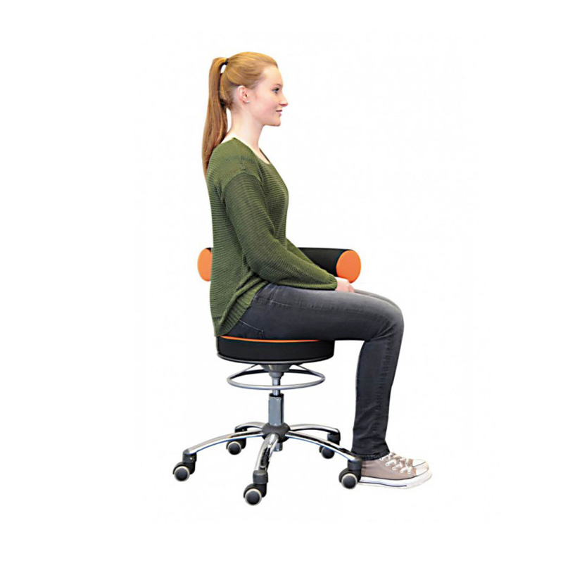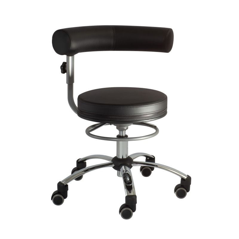 De Sanus Gezondheidsstoel met Verstelbare Rugleuning is een compacte gezondheidsstoel met ronde zitting en hygiënisch zwart kunstleder. De rugleuning stel je in hoogte af voor gerichte lumbale steun. Ideaal voor als je bijvoorbeeld werkt in de zorg of bij een kinderdagverblijf. Deze stoel bevorderd een actieve, rechte zithouding en helpt je om rugklachten te voorkomen.